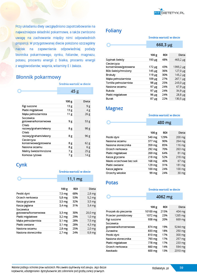 Dodatkowo do opracowanego planu dietetycznego otrzymasz atrakcyjnie przygotowane ciekawostki i wiadomości żywieniowe, które mam nadzieję pozwolą Ci zrozumieć wiele spraw związanych z nurtującym Cię problemem, a także przyczynią się do zwiększenia ogólnej wiedzy żywieniowej.