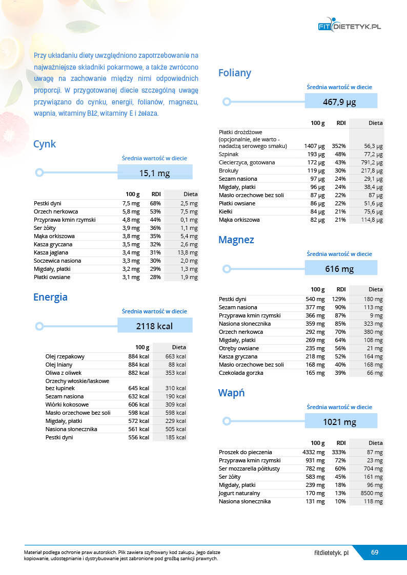 Dodatkowo do opracowanego planu dietetycznego otrzymasz atrakcyjnie przygotowane ciekawostki i wiadomości żywieniowe, które mam nadzieję pozwolą Ci zrozumieć wiele spraw związanych z nurtującym Cię problemem, a także przyczynią się do zwiększenia ogólnej wiedzy żywieniowej.