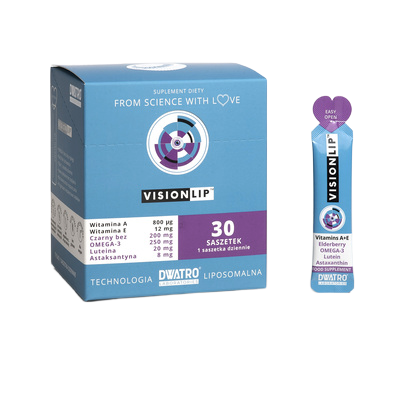 Unikalne połączenie luteiny, astaksantyny, omega-3, czarnego bzu, witaminy A, E i C w postaci żelu liposomalnego.