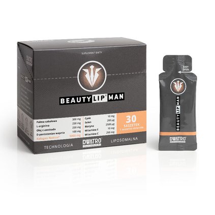 woda oczyszczona, kolagen rybi Naticol®, fosfolipidy z lecytyny słonecznikowej, substancja utrzymująca wilgoć: glicerol, olej z owoców plamy sabałowej (Serenoa repens, Bartram, Small) standaryzowany na zawartość 85% kwasów tłuszczowych, L-arginina, olej z awokado, witamina C (L-askorbinian sodu), kwas pantotenowy (D-pantotenian wapnia), cynk (glukonian cynku), witamina E (D-alfa-tokoferol), naturalny aromat, biotyna (D-biotyna), selen (L-selenometionina).