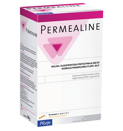 Permealine to suplement diety bogaty w L-glutaminę, witaminę A i cynk. Wspiera regenerację błony śluzowej jelit i poprawia jej funkcjonowanie. Przyczynia się do poprawnego funkcjonowania systemu immunologicznego, błon śluzowych i do ochrony komórek przed stresem oksydacyjnym. Rekomendowany do suplementacji w stanach przewlekłej dysbiozy oraz zespole nieszczelnego jelita towarzyszącego alergiom i nietolerancjom pokarmowym. Suplement diety opracowany na podstawie badań naukowych.Rekomendowany do suplementacji w: