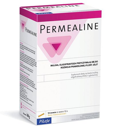 Permealine to suplement diety bogaty w L-glutaminę, witaminę A i cynk. Wspiera regenerację błony śluzowej jelit i poprawia jej funkcjonowanie. Przyczynia się do poprawnego funkcjonowania systemu immunologicznego, błon śluzowych i do ochrony komórek przed stresem oksydacyjnym. Rekomendowany do suplementacji w stanach przewlekłej dysbiozy oraz zespole nieszczelnego jelita towarzyszącego alergiom i nietolerancjom pokarmowym. Suplement diety opracowany na podstawie badań naukowych.Rekomendowany do suplementacji w: