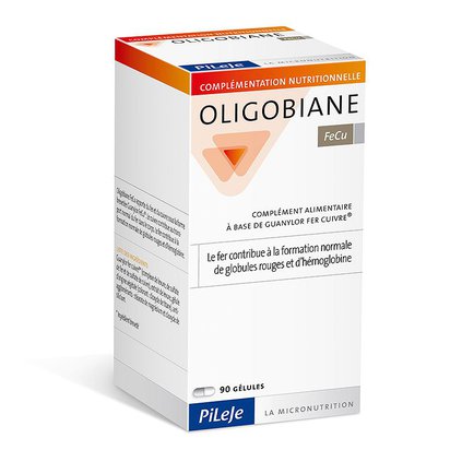 W przewodzie pokarmowym miedź jest kofaktorem absorpcji żelaza w enterocycie. W razie braku miedzi lub w trakcie zaburzenia równowagi między żelazem i miedzią na korzyść żelaza, jest ono akumulowane w enterocycie i nie jest transportowane do krążenia ogólnego. Oligobiane FeCu dostarcza żelaza i miedzi w opatentowanej postaci Guanylor FeCu®.Rekomendowany do suplementacji w: